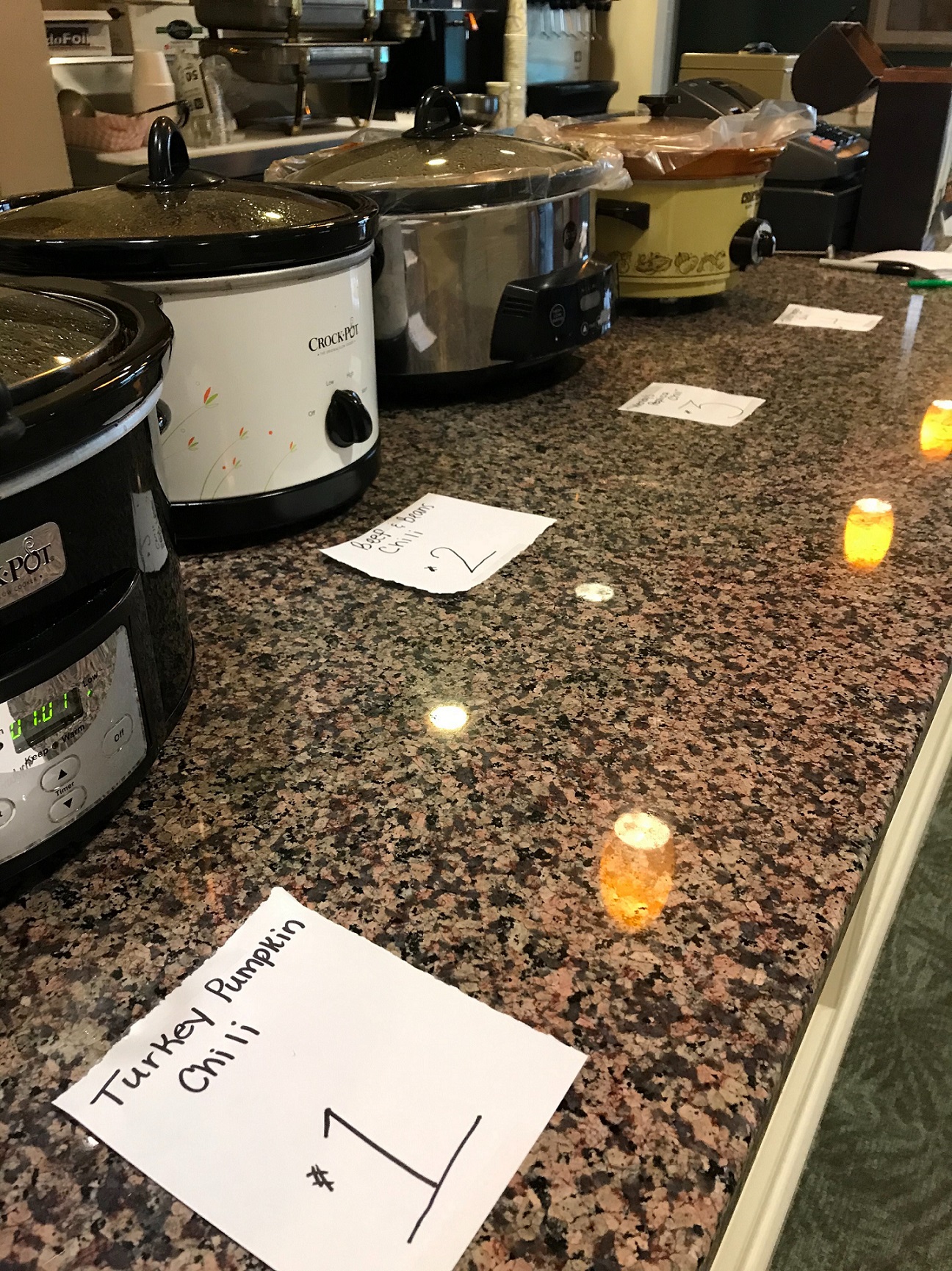 On Friday we had a Chili Cook off among staff. All proceeds benefited resident council. Taste testing chili and selling it by the bowl. What a treat on a “chili” Friday afternoon.